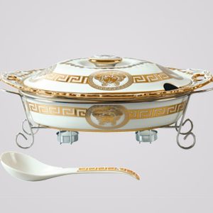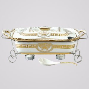 6пр: прямоугольное блюдо с крышкой, поварская ложка, хромированная подставка, 2 свечиПреймущества: