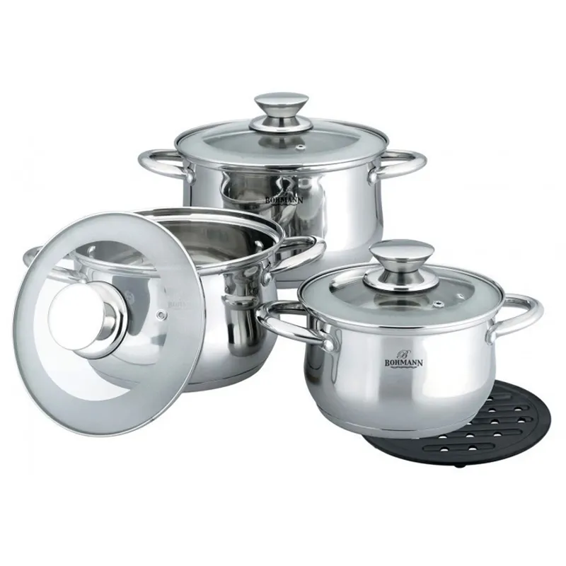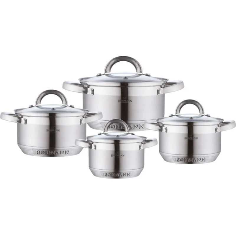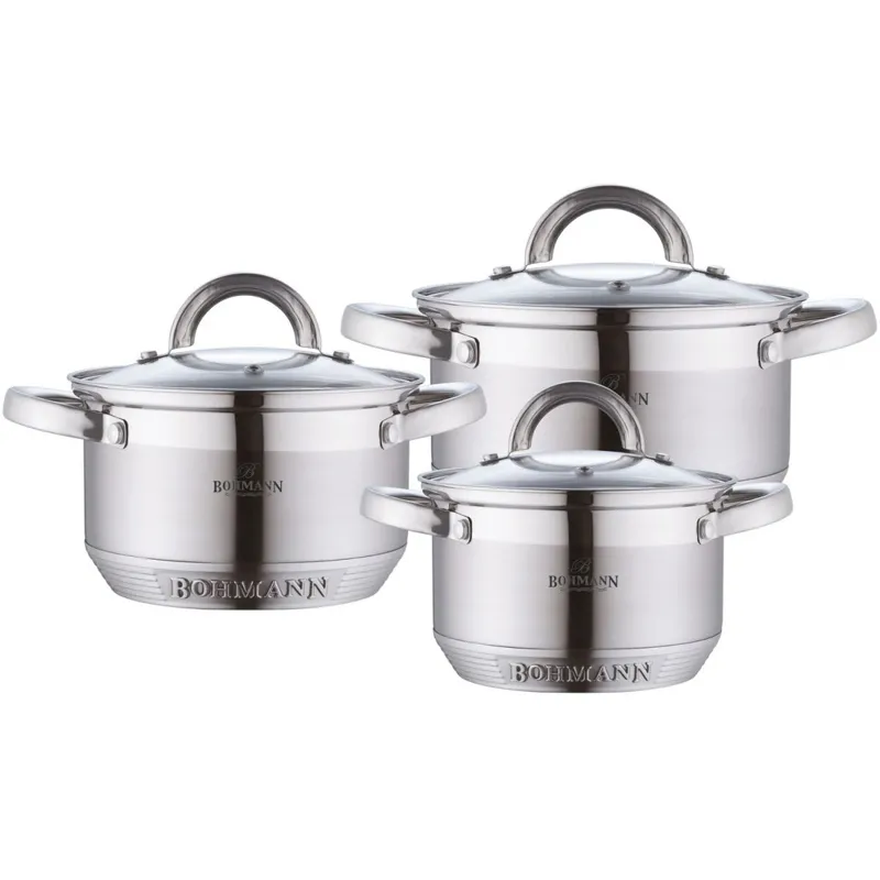 Кастрюли и сковородки BOHMANN изготовленные из нержавеющей стали, имеют многослойное капсульное дно с алюминиевым основанием, которое быстро и равномерно накапливает тепло и также равномерно передает его пище. Капсульное дно BOHMANN позволяет готовить блюда с минимальным количеством воды и жира, сохраняя при этом вкусовые и питательные свойства продуктов. Применение технологии многослойного дна создает эффект удержания тепла – пища готовится и после отключения плиты благодаря термоаккумулирующим свойствам посуды. Диаметры изделий соответствуют общепринятым размерам конфорок бытовых плит.