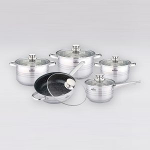 0 out of 5Набор посуды Bohmann (Бохманн) BH-1275N сделан из нержавеющей стали 18/10, что гарантирует долгий срок службы и превосходные эксплуатационные качества. Посуда из нержавеющей стали не окисляется и легко чиститься даже абразивными средствами. В набор посуды входят самые необходимые предметы. Большие и удобные ручки набора посуды Bohmann сделаны из нержавеющей стали. Ручки не нагреваются и не скользят в руках. Можно использовать в духовке.