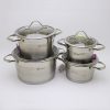 Набор посуды 6 предметов 9-шаговое Капсульное дно.Внутреннее антипригарное покрытие. Стальные ручки Стеклянная крышка. Размеры: 18х10,0см — 2,5л; 20х11,5см — 3,6л;24х6,5см-2,9л;.Подходит для индукции.