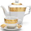 Чайный сервиз LORAINE на 6 персон выполнен из высококачественной керамики белого цвета и украшен широким золотым орнаментом в греческом стиле. Изящный дизайн придется по вкусу и ценителям классики, и тем, кто предпочитает утонченность и изысканность. Сервиз упакован в круглую подарочную коробку. Каждый предмет надежно зафиксирован внутри коробки благодаря специальным выемкам. Элегантный и стильный чайный сервиз не только украсит сервировку стола, но и поднимет настроение и превратит процесс чаепития в одно удовольствие. Чайный сервиз — идеальный и необходимый подарок для вашего дома и для ваших друзей в праздники, юбилеи и торжества! В наборе: 6 чашек и 6 блюдец.
